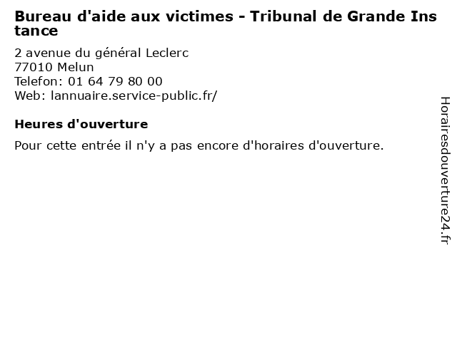 | Appeler Bureau d'aide aux victimes - Tribunal de Grande Instance | |