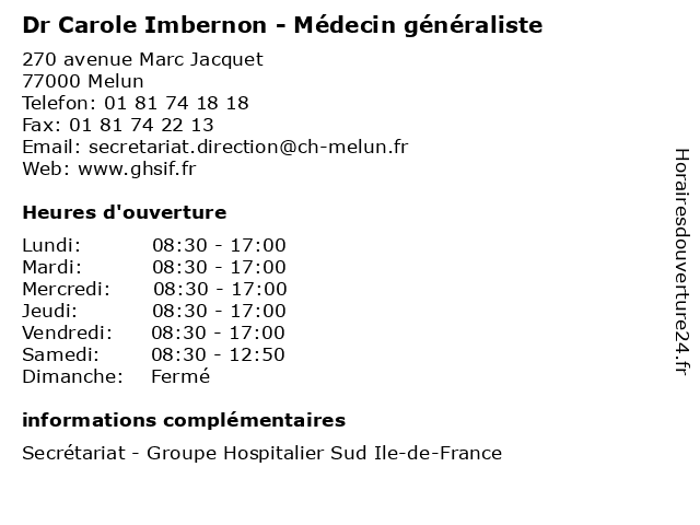 | Lundi | 08:30-17:00 |