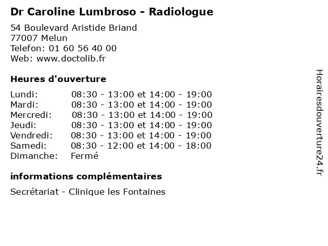 | Lundi | 08:30-13:00 et 14:00-19:00 |