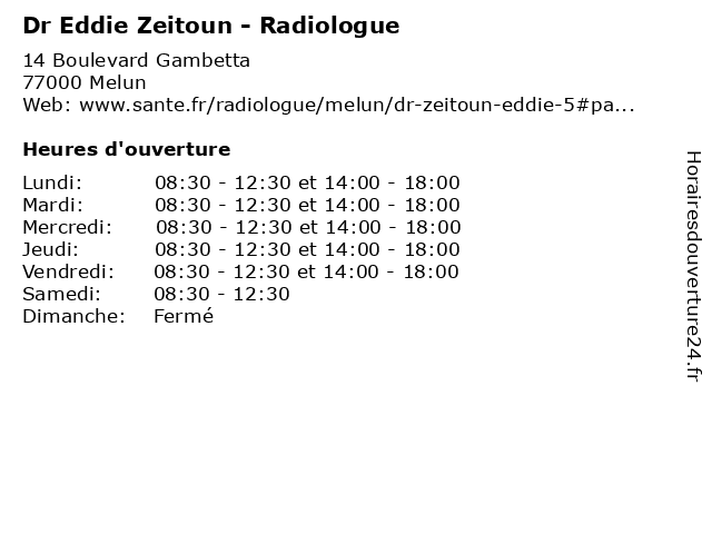| Lundi | 08:30-12:30 et 14:00-18:00 |
