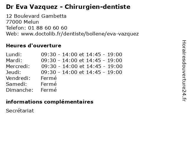 | Lundi | 09:30-14:00 et 14:45-19:00 |