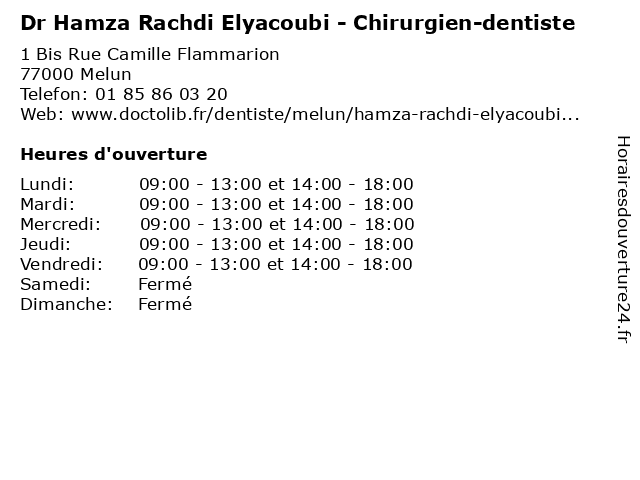 | Lundi | 09:00-13:00 et 14:00-18:00 |