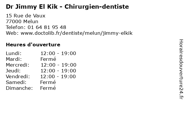 | Lundi | 12:00-19:00 |