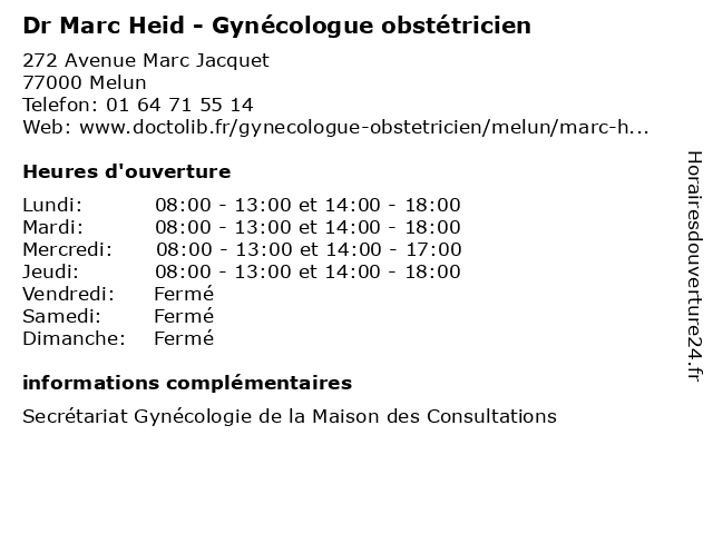 | Lundi | 08:00-13:00 et 14:00-18:00 |