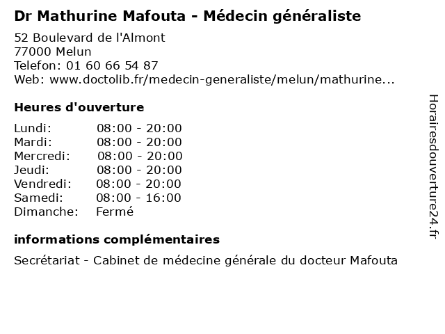 | Lundi | 08:00-20:00 |