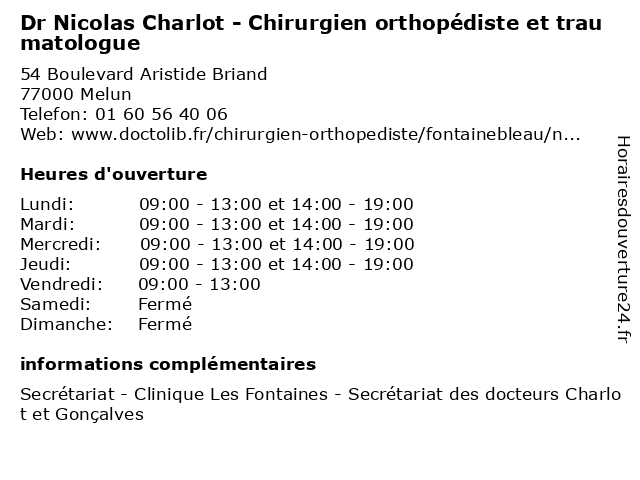 | Lundi | 09:00-13:00 et 14:00-19:00 |