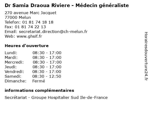 | Lundi | 08:30-17:00 |