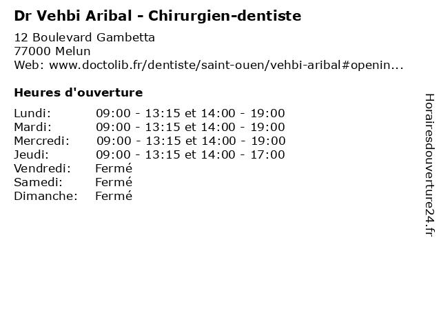 | Mercredi | 09:00-13:15 et 14:00-19:00 |