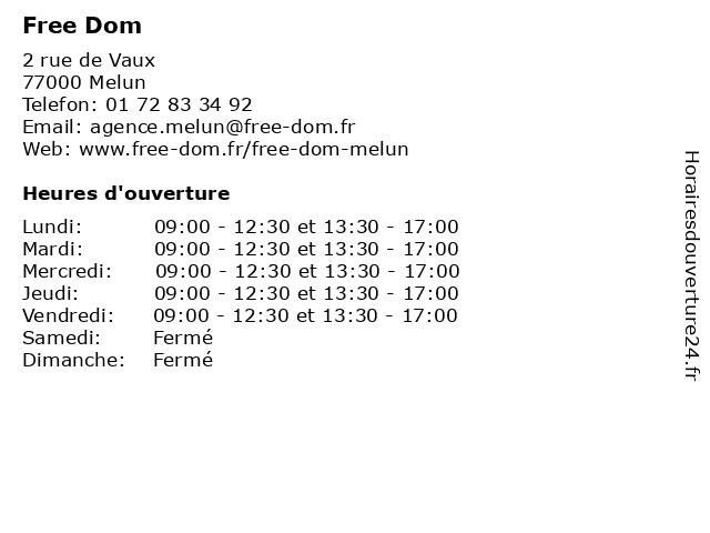 | Lundi | 09:00-12:30 et 13:30-17:00 |