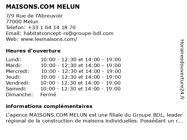 | Mercredi | 10:00-12:30 et 14:00-19:00 |