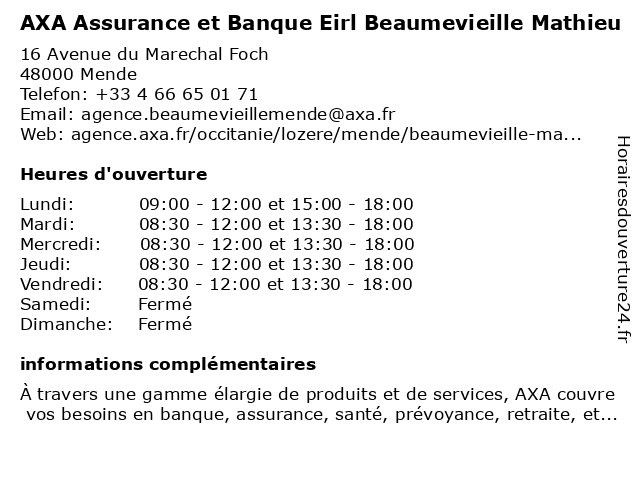 | Mardi | 08:30-12:00 et 13:30-18:00 |