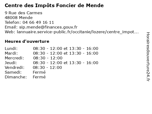 Termes de recherche pour Centre des Impôts Foncier de Mende:de, des, administration, services, centre, mende, impôts, services publics, assoc, foncier  |