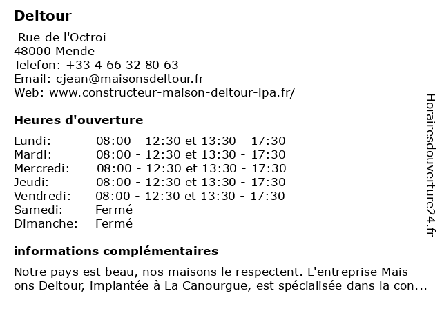 | Lundi | 08:00-12:30 et 13:30-17:30 |