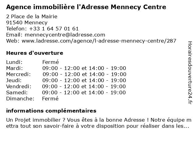 Termes de recherche pour Agence immobilière l'Adresse Mennecy Centre:centre, agence, immobiliere, mennecy, l'adresse |