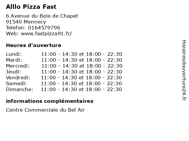 | Mardi | 11:00-14:30 et 18:00-22:30 |