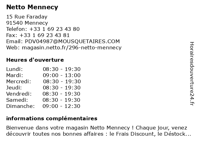 Termes de recherche pour Netto Mennecy:netto, mennecy |