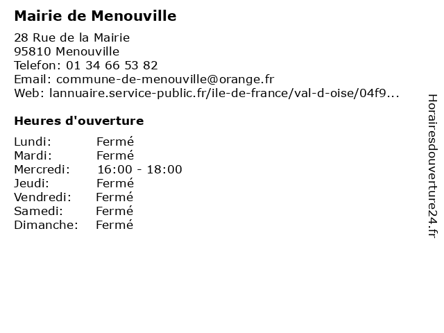 Termes de recherche pour Mairie de Menouville:de, administration, mairie, assoc public, menouville |