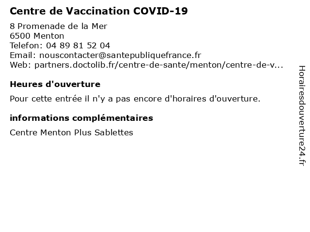 | 1 Centre de Vaccination COVID-19 (Distance: 13,72 km) 5 Rue Henri Rostagni, 06440 L'Escarène 19, centre, covid, covid 19, covid19, de, médecin, médecine, médical, test, vaccin, vaccination, vaccins 2 Centre de Vaccination COVID-19 (Distance: 15,93 km) 40 chemin du Gheit, 06390 Contes 19, centre, covid, covid 19, covid19, de, médecin, médecine, médical, test, vaccin, vaccination, vaccins 3 Centre de Vaccination COVID-19 (Distance: 16,31 km) 106 Boulevard Général de Gaulle, 06340 La Trinité 19, centre, covid, covid 19, covid19, de, médecin, médecine, médical, test, vaccin, vaccination, vaccins 4 Centre de Vaccination COVID-19 - CPTS de la Riviera Française (Distance: 11,79 km) - Place Saint-françois, 06380 Sospel 19, centre, covid, covid 19, covid19, cpts, de, française, la, médecin, médecine, médical, riviera, test, vaccin, vaccination, vaccins 5 Centre de Vaccination COVID-19 - Hôpital de Breil / MSP de la Roya (Distance: 18,34 km) 2 Rue Cordier, 06540 Breil-sur-Roya 19, breil, centre, covid, covid 19, covid19, de, hôpital, la, l’hôpital, msp, médecin, médecine, médical, roya, test, vaccin, vaccination, vaccins 6 Pharmacie Lafayette des Jardins (Distance: 1,26 km) 2 Rue Partouneaux, 06500 Menton des, jardins, lafayette, officine menton, pharmacie, pharmacie lafayette des jardins, pharmacie lafayette des jardins à menton, pharmacie lafayette à menton, test antigénique, test antigénique menton, vaccination covid, vaccination covid menton, vaccination menton |