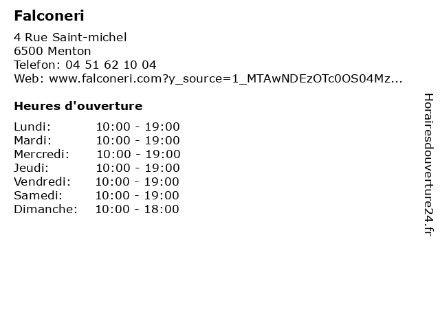 | Lundi | 10:00-19:00 |
