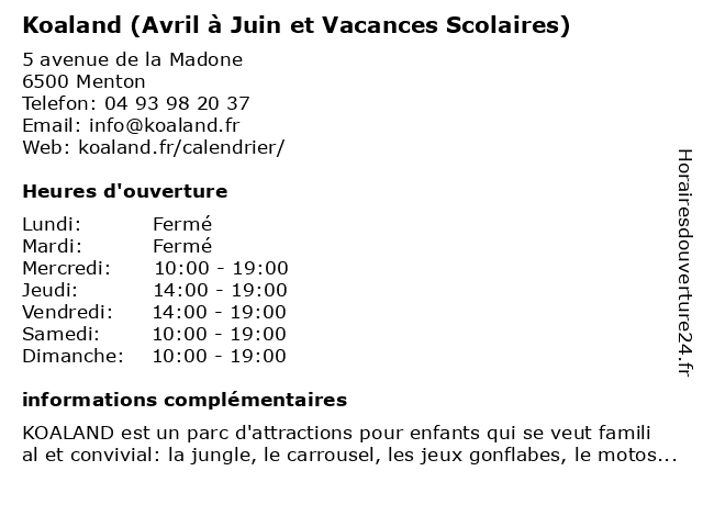 Termes de recherche pour Koaland (Avril à Juin et Vacances Scolaires):et, loisirs, vacances, parc, avril, juin, scolaires, attractions, koaland |