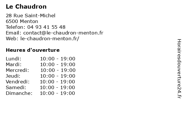 | Lundi | 10:00-19:00 |