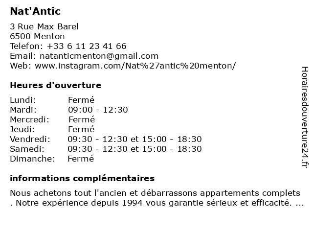 | Samedi | 09:30-12:30 et 15:00-18:30 |