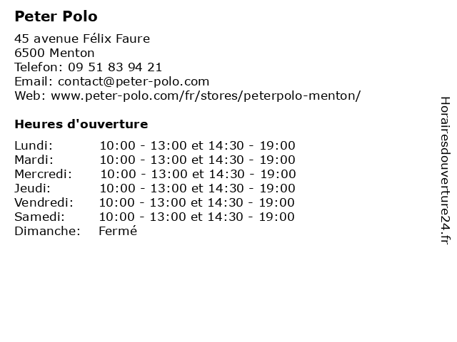 | Lundi | 10:00-13:00 et 14:30-19:00 |