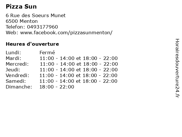 | Vendredi | 11:00-14:00 et 18:00-22:00 |