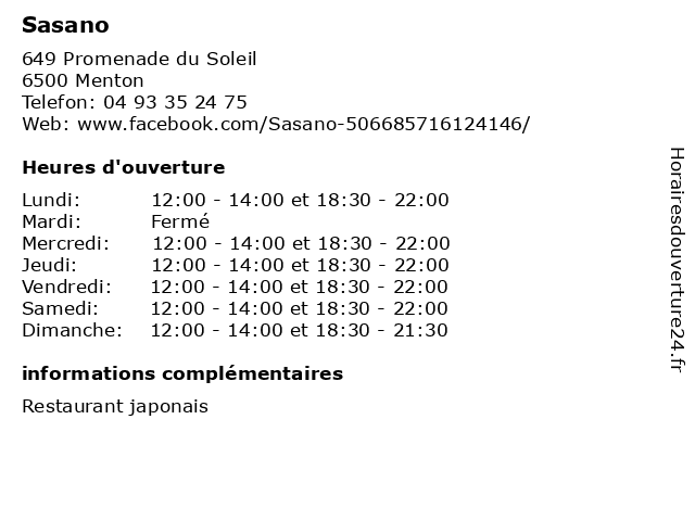| Samedi | 12:00-14:00 et 18:30-22:00 |