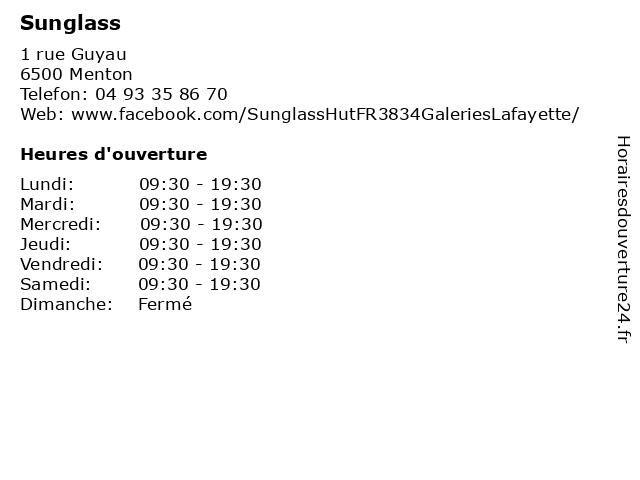 1 Sunglass Hut (Distance: 0,01 km) 27 Rue de la République, 06500 Menton femme, homme, hut, lunettes, optique, solaires, sunglass 2 Sunglass Hut (Distance: 20,75 km) 24 Avenue Jean Médecin, 06000 Nice femme, homme, hut, lunettes, optique, solaires, sunglass 3 Sunglass Hut (Distance: 20,75 km) 6 Avenue Jean Médecin, 06000 Nice femme, homme, hut, lunettes, optique, solaires, sunglass 4 Marc Le Bihan (Distance: 20,98 km) 1 Rue Alphonse Karr, 06000 Nice bihan, design, le, marc, optiques, solaires 5 Sunglass Hut (Distance: 27,92 km) 19 quartier du Lac, 06700 Saint-Laurent-du-Var femme, homme, hut, lunettes, optique, solaires, sunglass 6 Clinique FSEF Vence Les Cadrans Solaires (Distance: 31,34 km) 11 Route De Saint Paul, 06140 Vence cadrans, clinique, ecoles, fsef, les, medical, soins, solaires, soutien, séjour, vence |