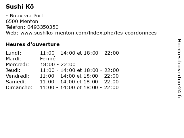 1 Sushi kô (Distance: 5,15 km) - Terre-Plein du Nouveau Port, 06500 Menton japonais, kô, makis, restaurant, sushi 2 Sushi Shop Corner (Distance: 3,66 km) 234 Rue Maurice Menton, 40280 Saint-Pierre-du-Mont corner, japonais, makis, poisson, shop, sushi 4 Deli Sushi (Distance: 5,83 km) 3 boulevard des Moneghetti, 06240 Beausoleil deli, japonais, livraison, restaurants, sushi 5 Planet Sushi (Distance: 5,98 km) 17 Boulevard Albert 1er, 98000 Monaco asiatique, fast, food, japonais, japonaise, planet, rapide, restaurant, restauration, sushi, sushis 6 Smart Sushi (Distance: 7,02 km) 81 Avenue du Trois Septembre, 06320 Cap- d Ail japonais, makis, restaurant, riz, sishis, smart, sushi |