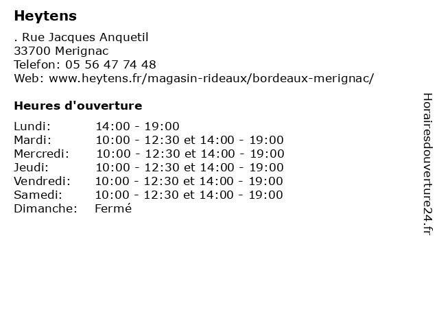 | Mardi | 10:00-12:30 et 14:00-19:00 |
