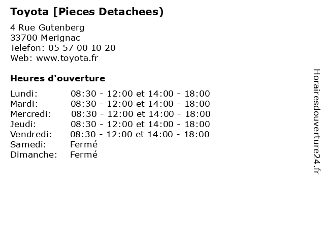 | Lundi | 08:30-12:00 et 14:00-18:00 |