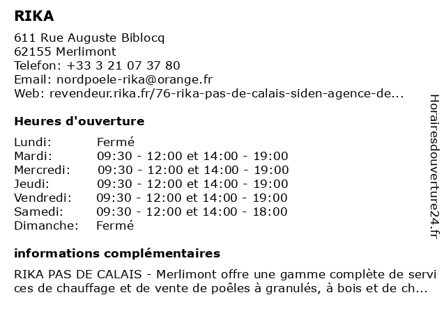 1 RIKA Shop (Distance: 51,76 km)500 Rue de Saint-Pol, 62130 Herlin-le-Sec rika, shop