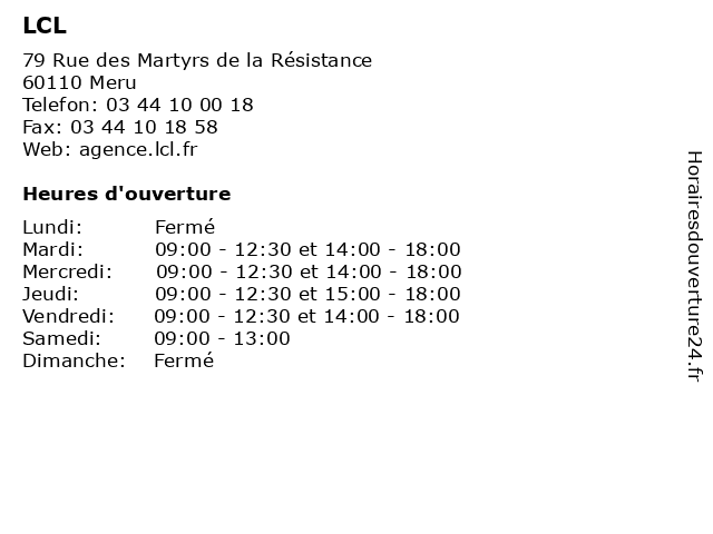 1 LCL (Distance: 11,50 km) 155 Place de l'Hôtel de Ville, 60230 Chambly agence, assurance, bancaire, banque, lcl 3 Lcl (Distance: 15,35 km) Avenue Des Ecuries De Conti, 95290 L Isle Adam banques, commerciales, credit, lcl, lyonnais, nationales 4 LCL (Distance: 15,48 km) 2 Rue Nationale, 95260 Beaumont Sur Oise agence, assurance, bancaire, banque, lcl 6 LCL (Distance: 19,02 km) 46 Rue Du General De Gaulle, 95430 Auvers Sour Oise banque, crédit, lcl, service  |
