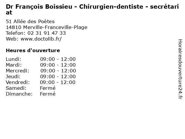 | Mercredi | 09:00-12:00 |