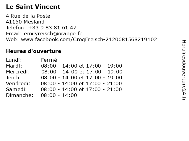 | Mercredi | 08:00-14:00 et 17:00-19:00 |