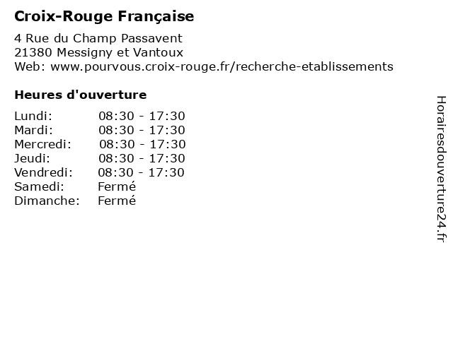 1 Croix-Rouge Française (Distance: 13,61 km) 9 Bis Boulevard du Champ aux Métiers, 21800 Quetigny bénévole, croix, croix-rouge, française, locale, quetigny, rouge, secours, unité 2 Croix-Rouge Française (SESSAD) (Distance: 0,00 km) 4 Rue du Champ Passavent, 21380 Messigny et Vantoux aide, creche, croix, française, prévention, rouge, rééducation, santé, services, sessad 3 Croix-Rouge Française (MAS) (Distance: 0,14 km) 1 Rue des Genevries, 21380 Messigny et Vantoux aide, creche, croix, française, mas, prévention, rouge, rééducation, santé, services 4 Restaurant Carré Rouge (Distance: 9,97 km) 2 Avenue Raymond Poincaré, 21000 Dijon bar, bistro, bistrot, brasserie, café, carré, restaurant, restauration, rouge 6 Pharmacie La Croix Blanche (Distance: 10,13 km) 24 rue Musette, 21000 Dijon aromathérapie, blanche, croix, herboristerie, la, nutrithérapie, pharmacie, phytothérapie |