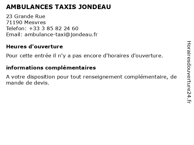 Appeler AMBULANCES TAXIS JONDEAU | |