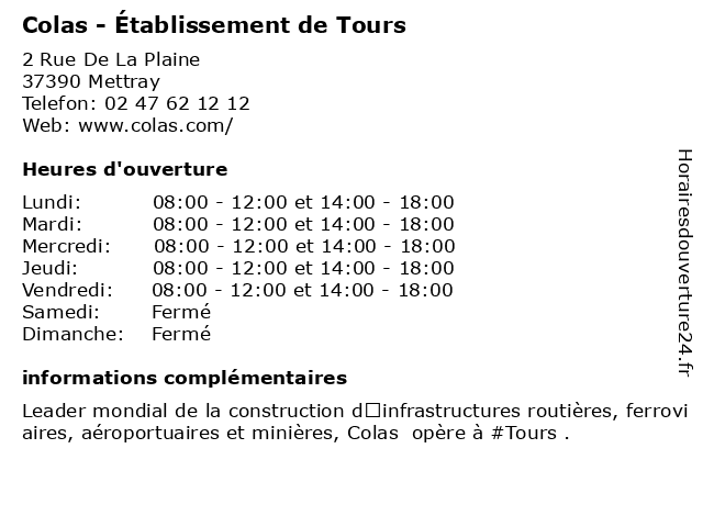 Termes de recherche pour Colas - Établissement de Tours:de, tours, colas, etablissement, entreprise générale de construction |