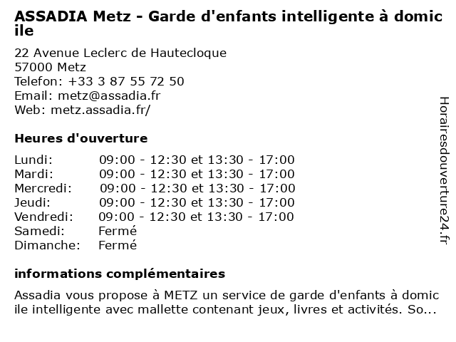 | Lundi | 09:00-12:30 et 13:30-17:00 |