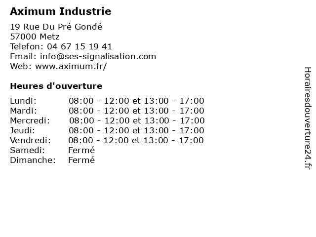 | Lundi | 08:00-12:00 et 13:00-17:00 |