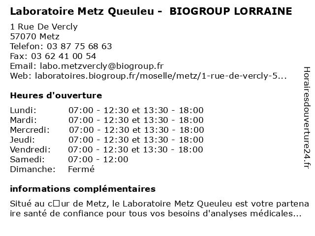 | Lundi | 07:00-12:30 et 13:30-18:00 |