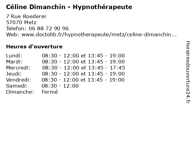 | Lundi | 08:30-12:00 et 13:45-19:00 |