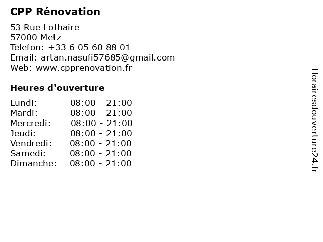 | Lundi | 08:00-21:00 |