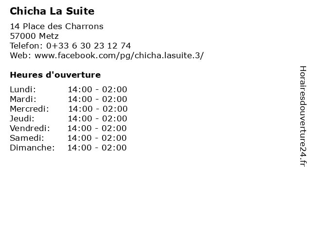 | Samedi | 14:00-02:00 |
