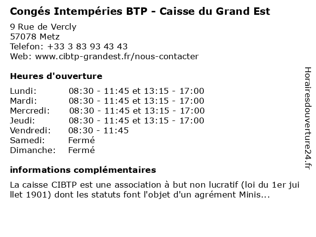 | Mercredi | 08:30-11:45 et 13:15-17:00 |