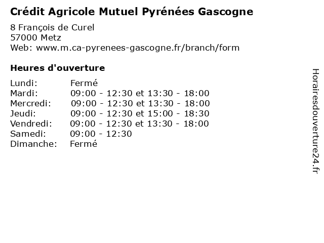 | Mercredi | 09:00-12:30 et 13:30-18:00 |