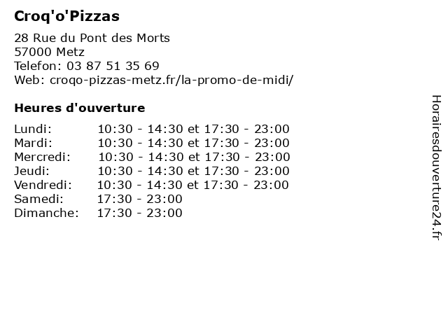 | Mardi | 10:30-14:30 et 17:30-23:00 |
