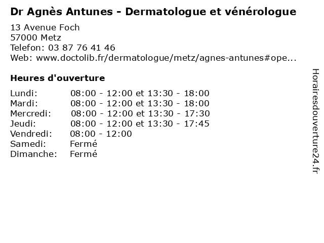 | Lundi | 08:00-12:00 et 13:30-18:00 |